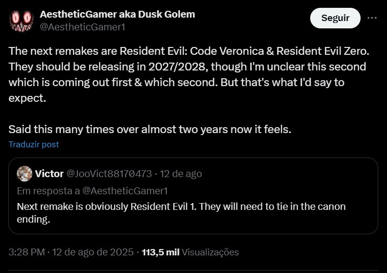 A Capcom não parece interessada em fazer um remake para Resident Evil 5 tão cedo. Ao menos é isso que declara Dusk Golem (@aestheticgamer1), conhecido insider do mundo dos jogos. Segundo ele, uma nova versão do game não foi aprovada “neste momento”. Todo rumor deve ser visto com ceticismo, ainda mais levando-se em consideração que […]